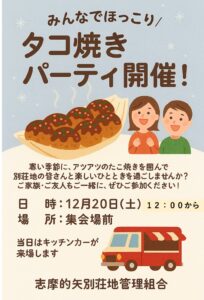 寒い季節に、アツアツのタコ焼きを囲んで別荘地の皆さんと楽しいひとときを過ごしませんか?